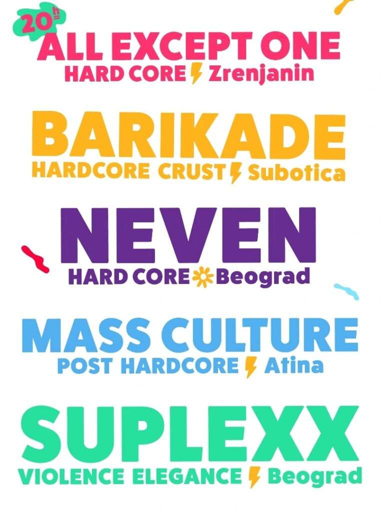 U petak 13. juna na lokaciji Medenjača, na salašu The spirit of Schultz startovaće festival na kom će počev od 20 časova nastupati: All Except One, hardcore sastav iz Zrenjanina, Barikade, subotički hardcore crust bend, mlada i talentovana HC grupa iz Beograda, Neven, post-hardcore sastav Mass Culture iz Atine, te beogradska ekipa Suplexx.