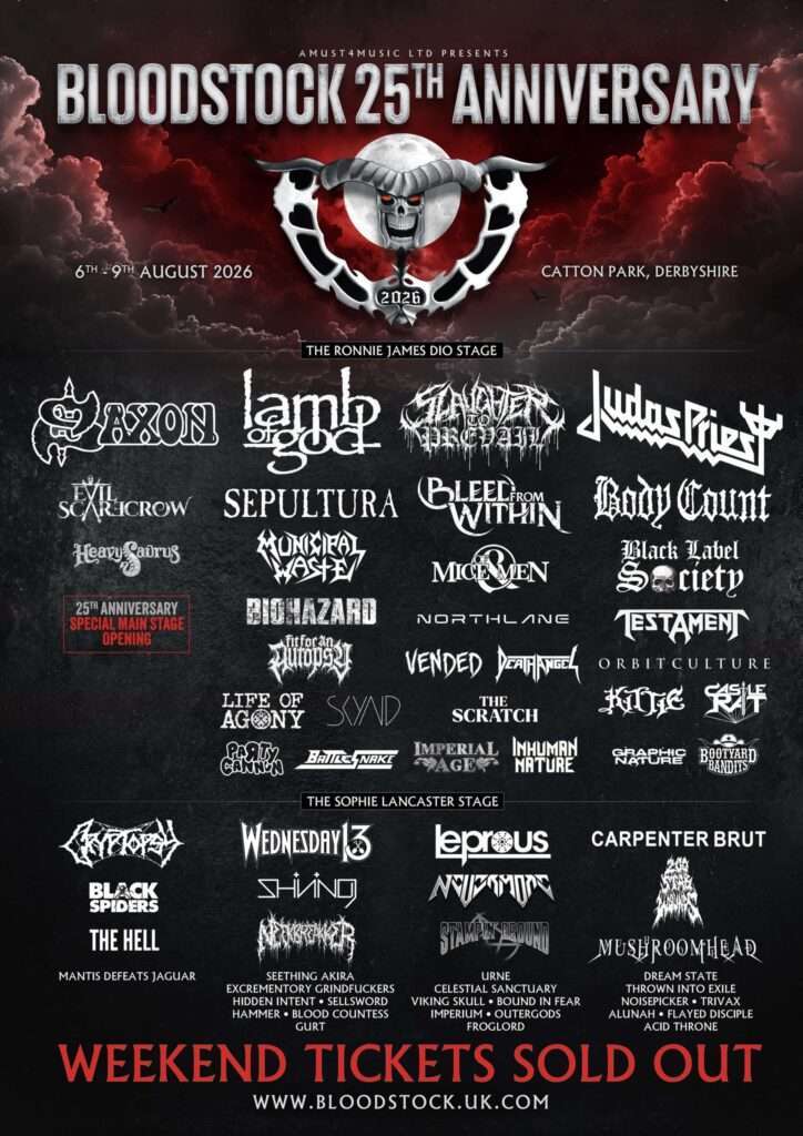 Predstojeći Bloodstock festival biće održan od 6. do 9. avgusta na lokaciji Catton Park u Derbiširu. Reč je o najluđem i najvećem britanskom festivalu posvećenom pravim zaljubljenicima u heavy metal muziku. Koliko su fanovi zadovoljni programom pokazuje i to da su vikend ulaznice rasprodate. Međutim, Bloodstock će kasnije pustiti dnevne karte u prodaju, a više informacija možete pronaći na njihovom zvaničnom sajtu.