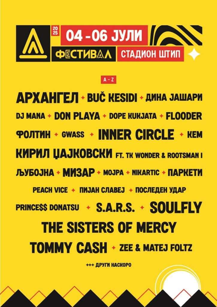 Među svetskim zvezdama na D Festival dolaze britanski pioniri dark-roka The Sisters of Mercy, zatim Inner Circle sa hitovima poput “Bad Boys”, “Sweat (A La La La La Long)” i drugima. Ljubitelji najžešćeg zvuka imaće čast da uživaju u nastupu kultnog brazilsko-američkog metal benda Soulfly, predvođenog čuvenim Maxom Cavalerom. U Štip će i najsvežija evrovizijska senzacija Tommy Cash iz Estonije. Tu su i predstavnici Srbije, Buč Kesidi i S.A.R.S.. Više informacija možete pronaći na zvaničnoj festivalskoj stranici.