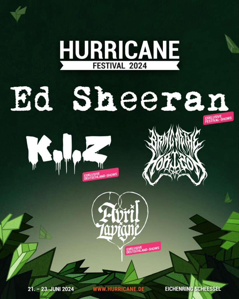 Predstavljeni su prvi izvođači koji će naredne godine nastupati na nemačkim festivalima Hurricane i Southside među kojima su Ed Sheeran i Avril Lavigne.