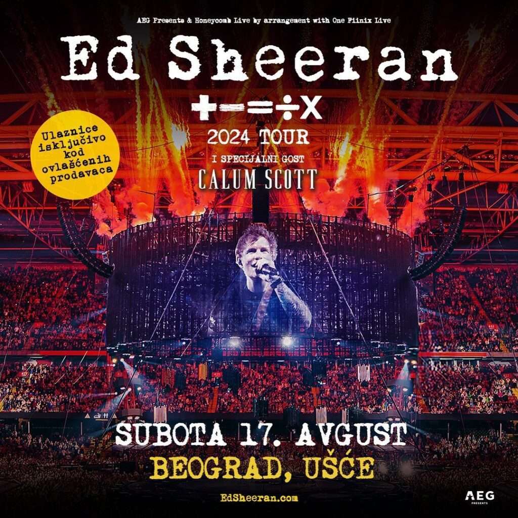 Sheeran, britanska hit-mašina, zakazao je seriju koncerata po Aziji i Evropi u koju se vraća nakon turneje po Severnoj Americi. U Beogradu svirati u okviru evropskog dela + – = ÷ x (Mathematics) turneje. Pre srpske prestonice, u komšiluku će svirati 10. avgusta u Zagrebu, dok je za 24. avgust na sajtu muzičara najavljen koncert u Bukureštu, a 31. avgusta u Sofiji.