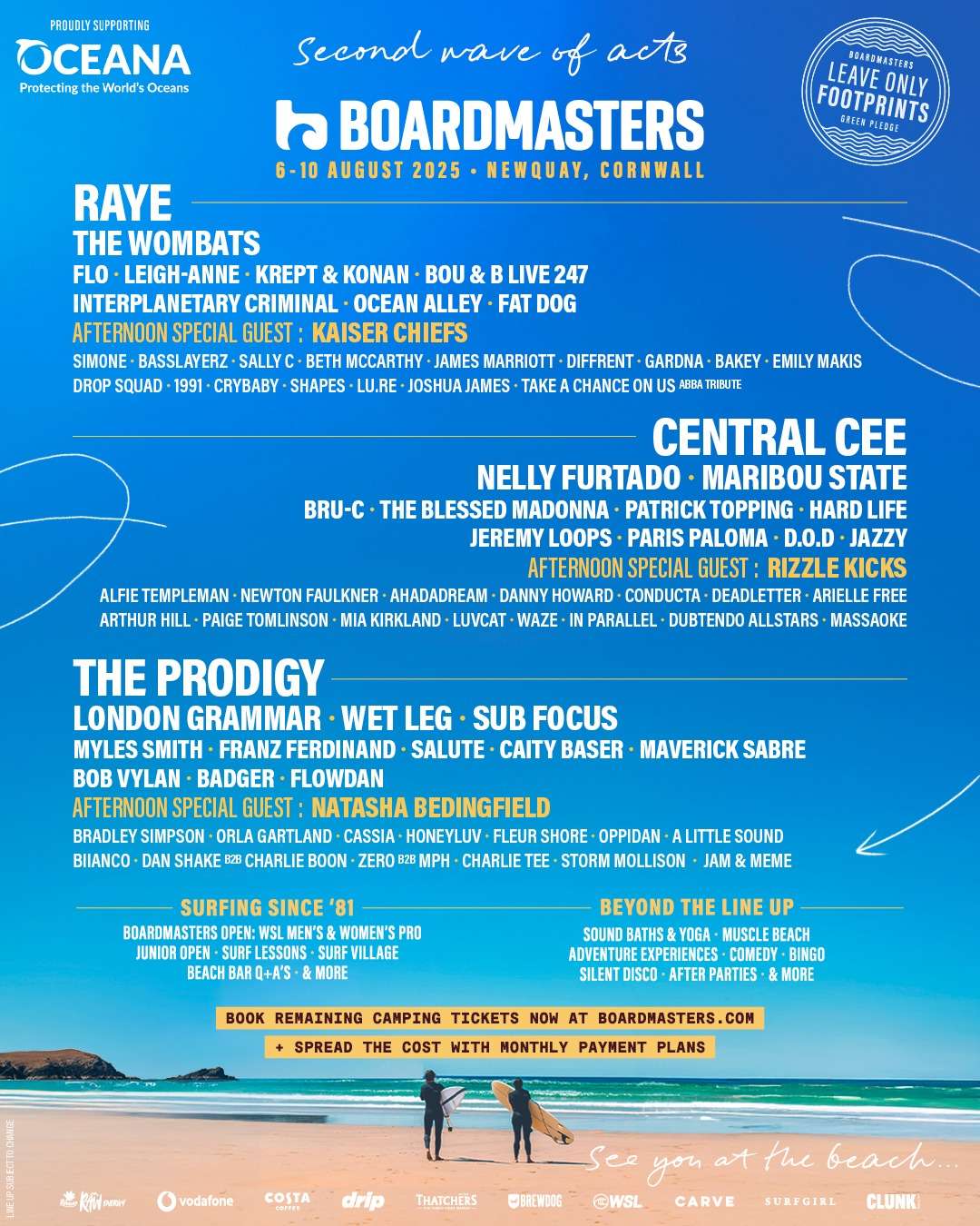 Boardmasters spaja preko 200 muzičara koji nastupaju na dvanaest pozornica pored plaže u Kornvolu sa profesionalnim surferima koji se takmiče na svetskom nivou.