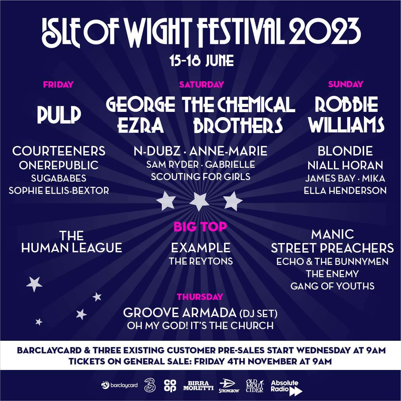 Isle of Wight jedan je od istorijski najznačajnijih festivala u Velikoj Britaniji. Poznata je priča o 1970. godini kada se 700.000 ljudi sjatilo da vidi kako Jimi Hendrix isteruje đavola na gitari što je dovelo do zabrane održavanja. Ipak, trijumfalni povratak dogodio se 2002. i od tada neprestano donosi zabavu za mnogobrojne fanove različitih umetnosti.