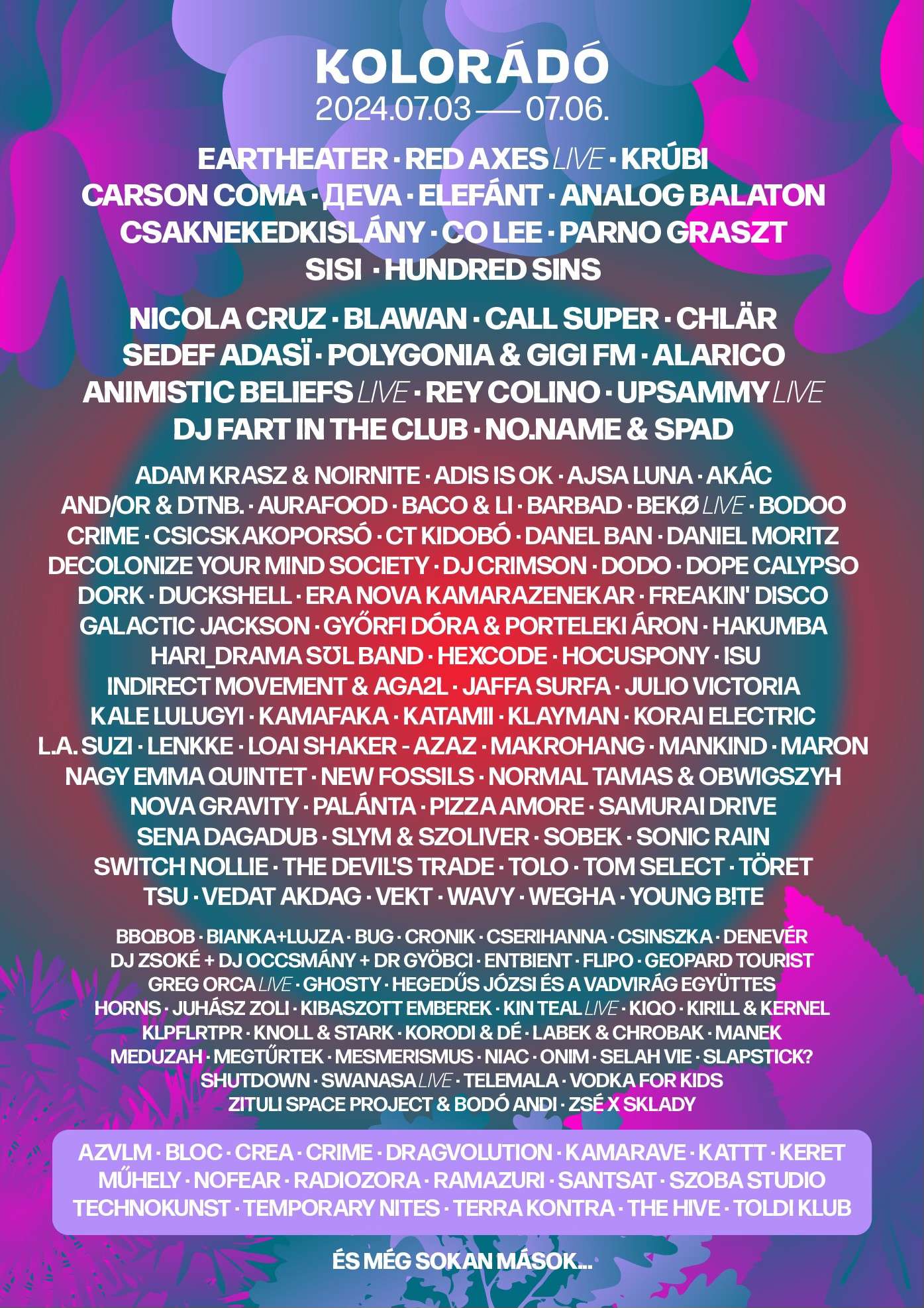 Kolorádó festival održava se u izviđačkom parku Sztrilich Pál nedaleko od Budimpešte. Pored lokalnih i internacionalnih bendova svih žanrova, tokom četiri dana ovaj događaj nudi žurke u šumi, umetničke instalacije i radionice, tribalne ritmove i plesne performanse pored vatre kao i mogućnost kampovanja u čarobnom prirodnom okruženju.