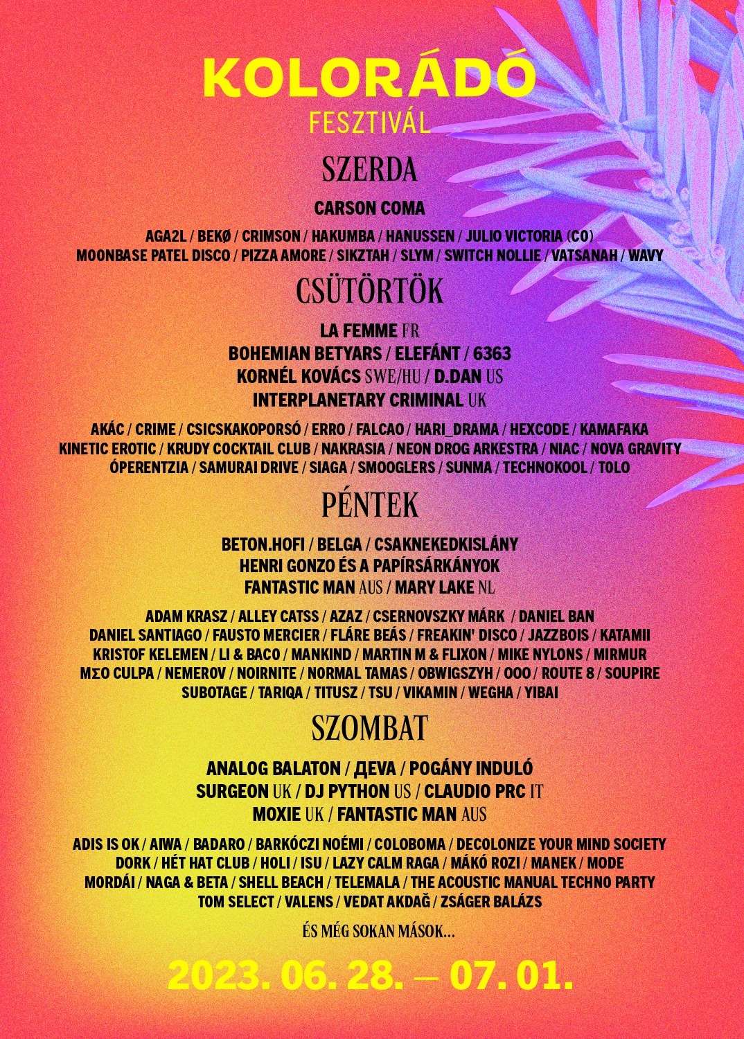 Kolorádó festival održava se u izviđačkom parku Sztrilich Pál nedaleko od Budimpešte. Pored lokalnih i internacionalnih bendova svih žanrova, tokom četiri dana ovaj događaj nudi žurke u šumi, umetničke instalacije i radionice, tribalne ritmove i plesne performanse pored vatre kao i mogućnost kampovanja u čarobnom prirodnom okruženju.