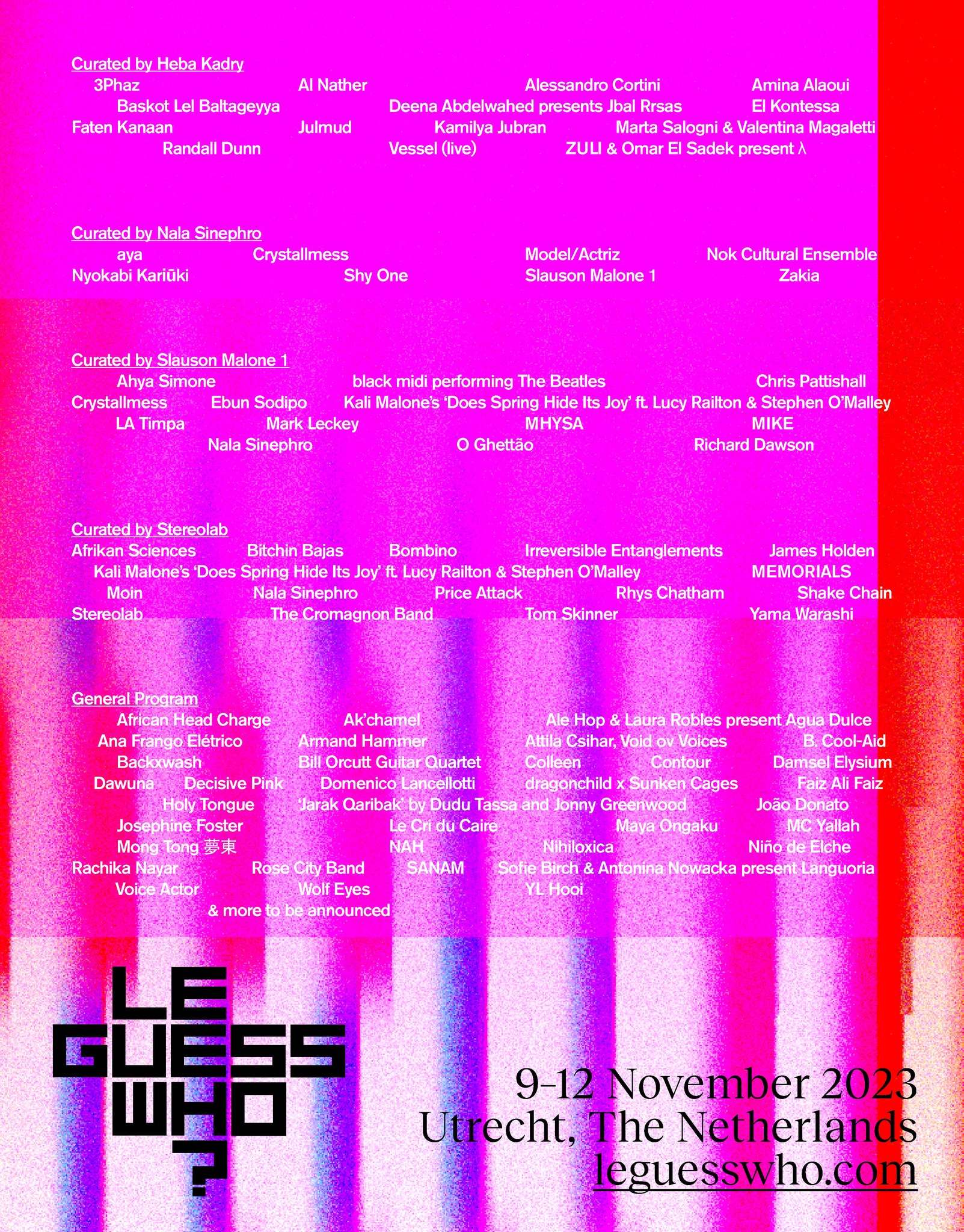 Le Guess Who? je multižanrovski festival koji se svakog novembra održava u centru holandskog grada Utrehta. Događaj predstavlja uzbudljive, nove bendove u kombinaciji sa muzičkim legendama i klasicima. U pitanju je svojevrstan holandski bastion kada se govori o eksperimentalnoj muzici. Program se održava na 15 lokacija od crkava preko galerija do klubova.