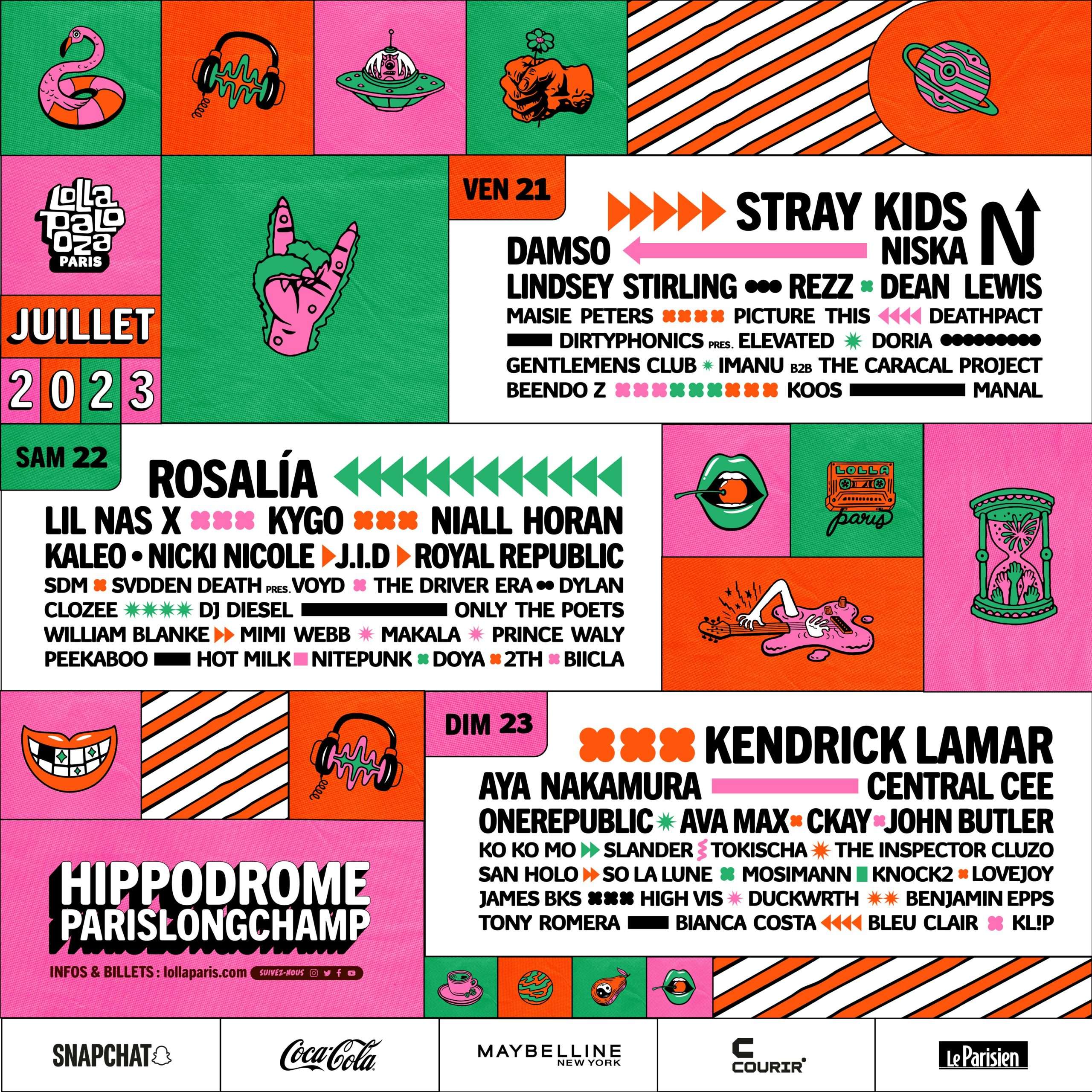 Francuska verzija putujućeg Lollapalooza cirkusa održava se od 2016. godine u Parizu. Tokom vrelog julskog vikenda brojne internacionalne i lokalne zvezde nastupaju u jednoj od najlepših svetskih destinacija, a broj posetilaca se povećava iz godine u godinu.