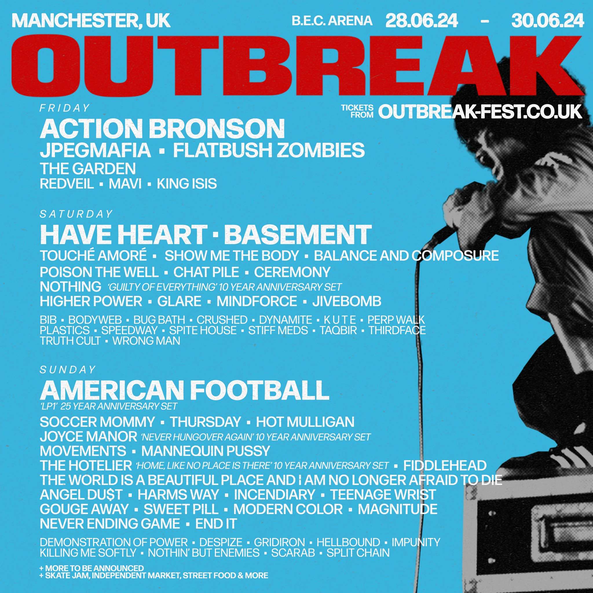 Outbreak je punk, hardcore i hip-hop festival koji se nakon devet godina u Lidsu, 2022. preselio u Mančester. Nastupaju uglavnom lokalni mladi i žestoki bendovi u naponu snage, ali nađe se mesta i za proverene, internacionalne izvođače. Pored koncerata, posetioci mogu uživati u skejt egzibicijama, umetničkim i fotografskim izložbama, kao i berzi ploča i cd-ova.