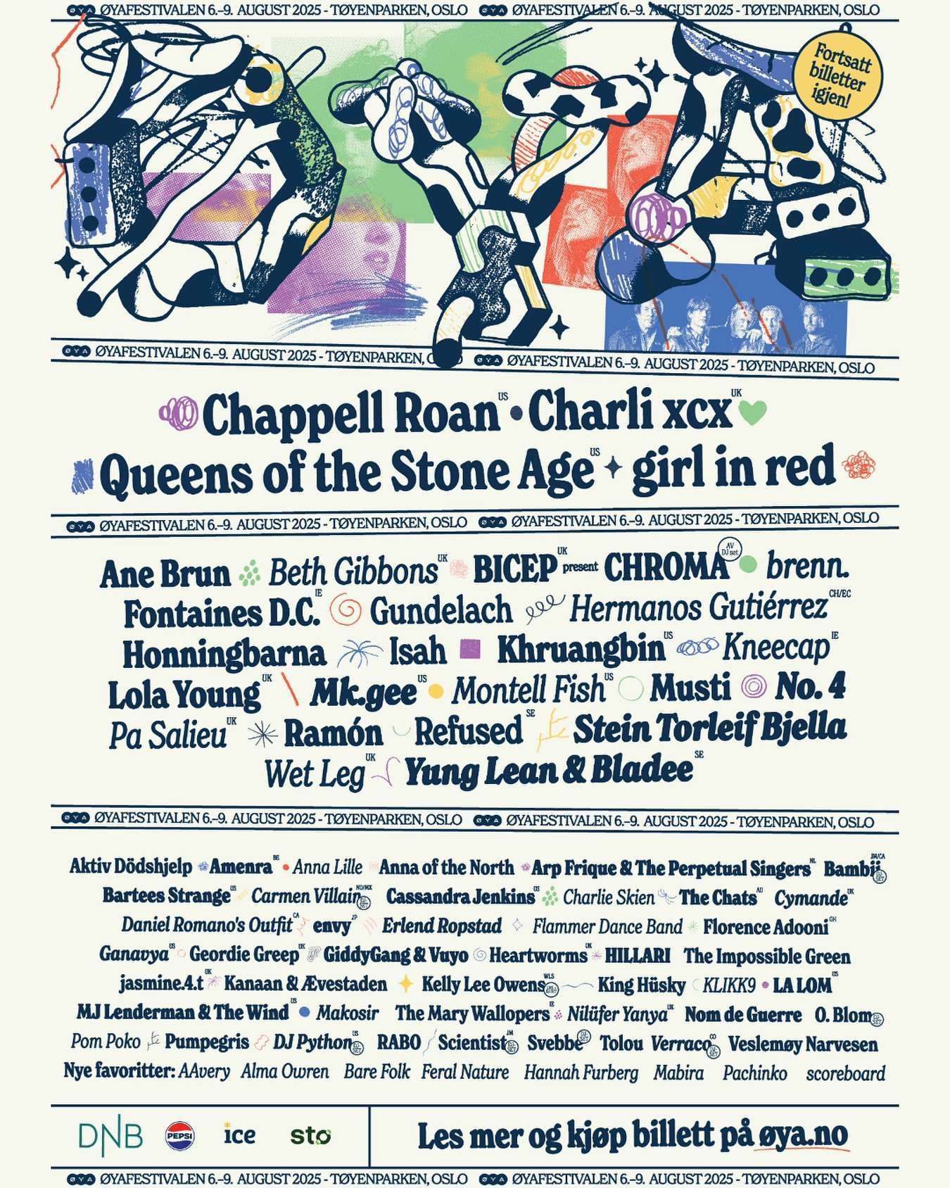 Jedan od omiljenijih norveških festivala održava se svakog avgusta u Tøyen Parku u Oslu. Pravi raj za alternativce i zaljubljenike u indie muziku, organizatori iz godine u godinu uspevaju da kreiraju lajnap gde se susreću internacionalne zvezde i talentovani lokalni izvođači. Øya Festival se takođe ponosi svojom održivošću i svojim revolucionarnim zelenim inicijativama
