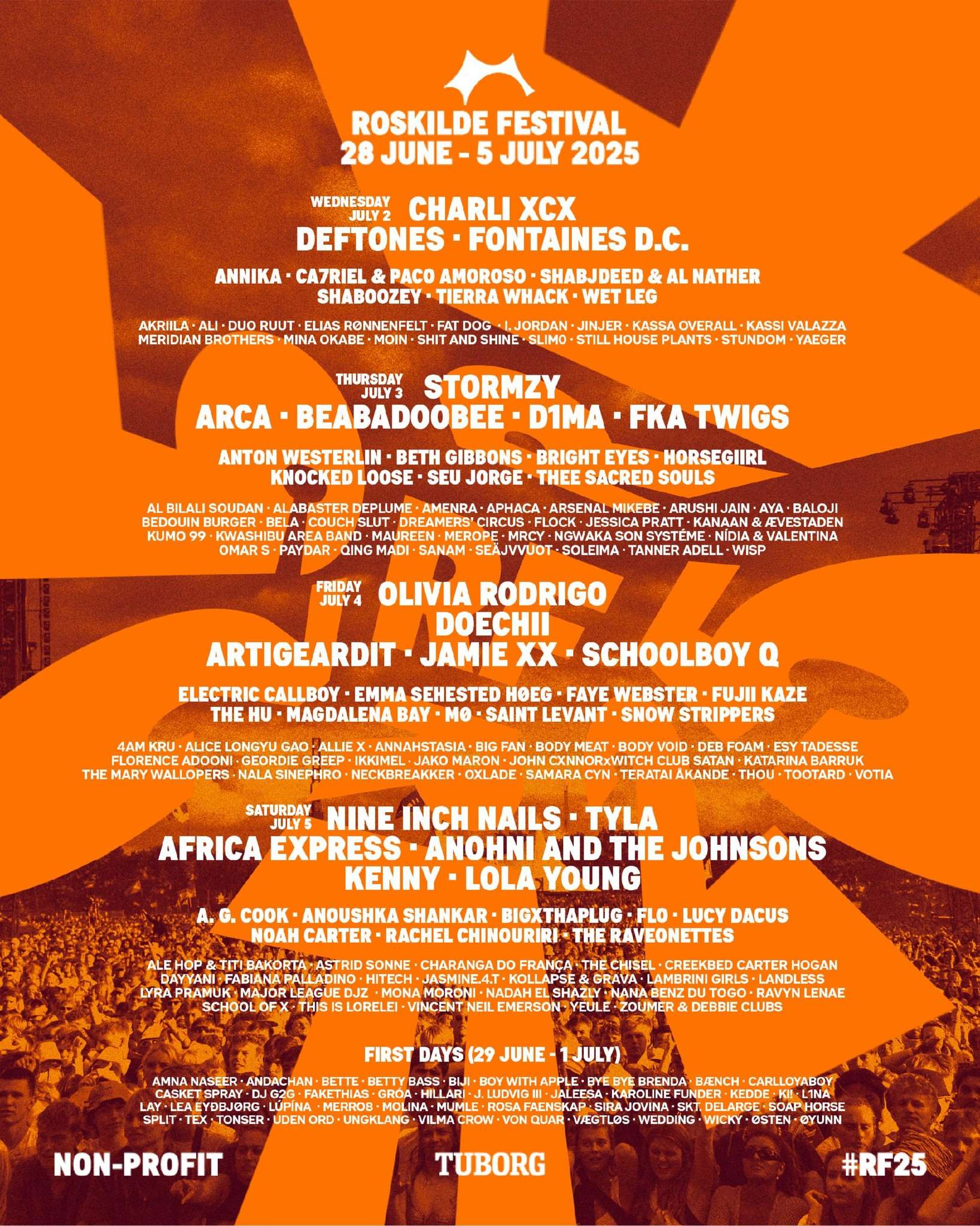 Roskilde već pola veka oduševljava publiku skoro neuporedivim lajnapovima. I od samog početka festival se vodi kao neprofitna organizacija, a posetioci festivala imaju priliku da nominuju organizacije koje će dobiti sredstva od prikupljenog novca.