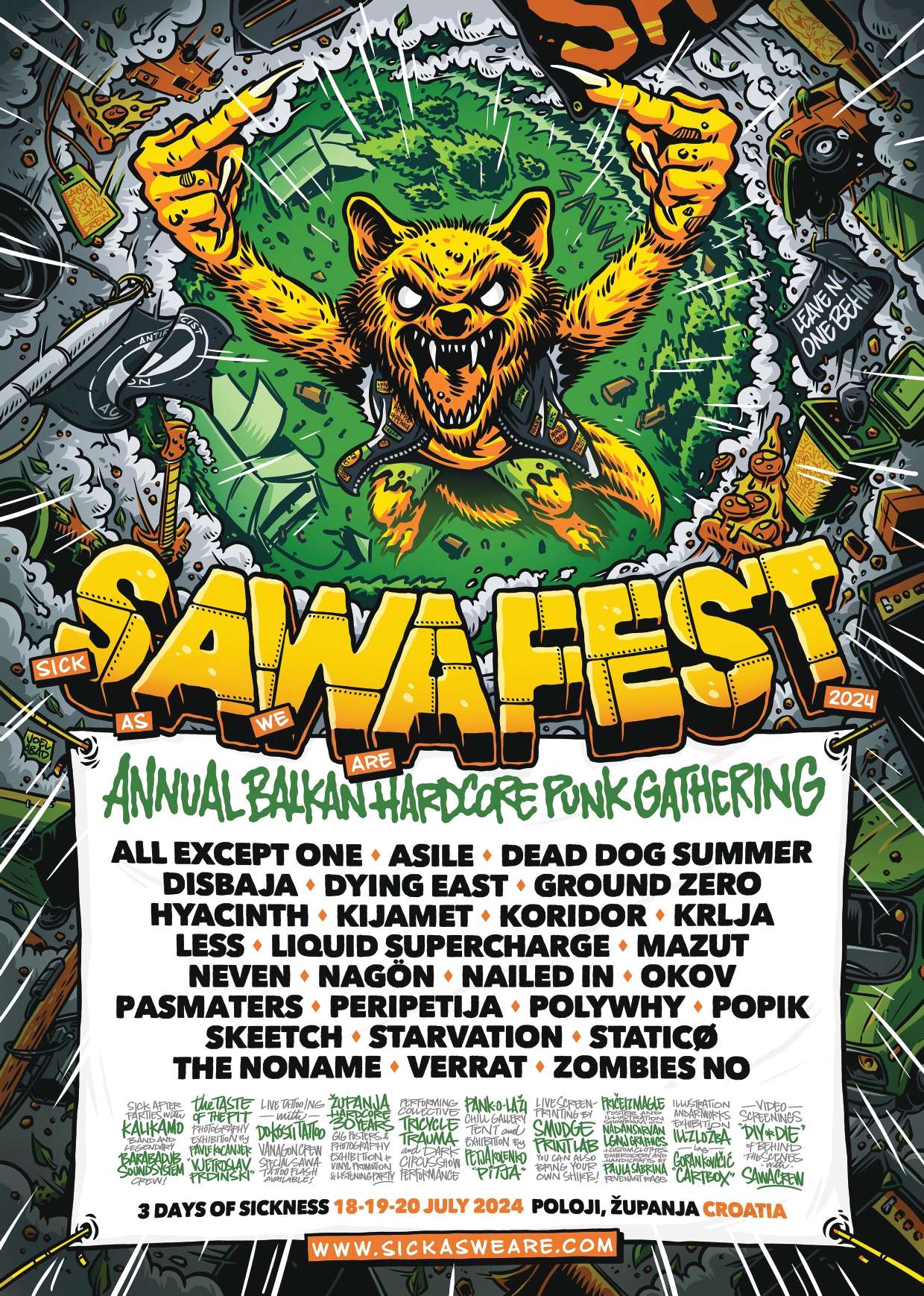 SAWA tj. Sick As We Are je hardcore/punk festival koji se održava na lokalitetu Poloji, u Županji. Reč je o besplatnom događaju, koje pruža mogućnost kampovanja uz reku Savu, ali posetioci uplaćuju dobrovoljne donacije. Festival, ali i bendovi se podržavaju kupovinom mercha na štandovima, od nalepnica, majica, zastava, cegera i muzičkih izdanja.