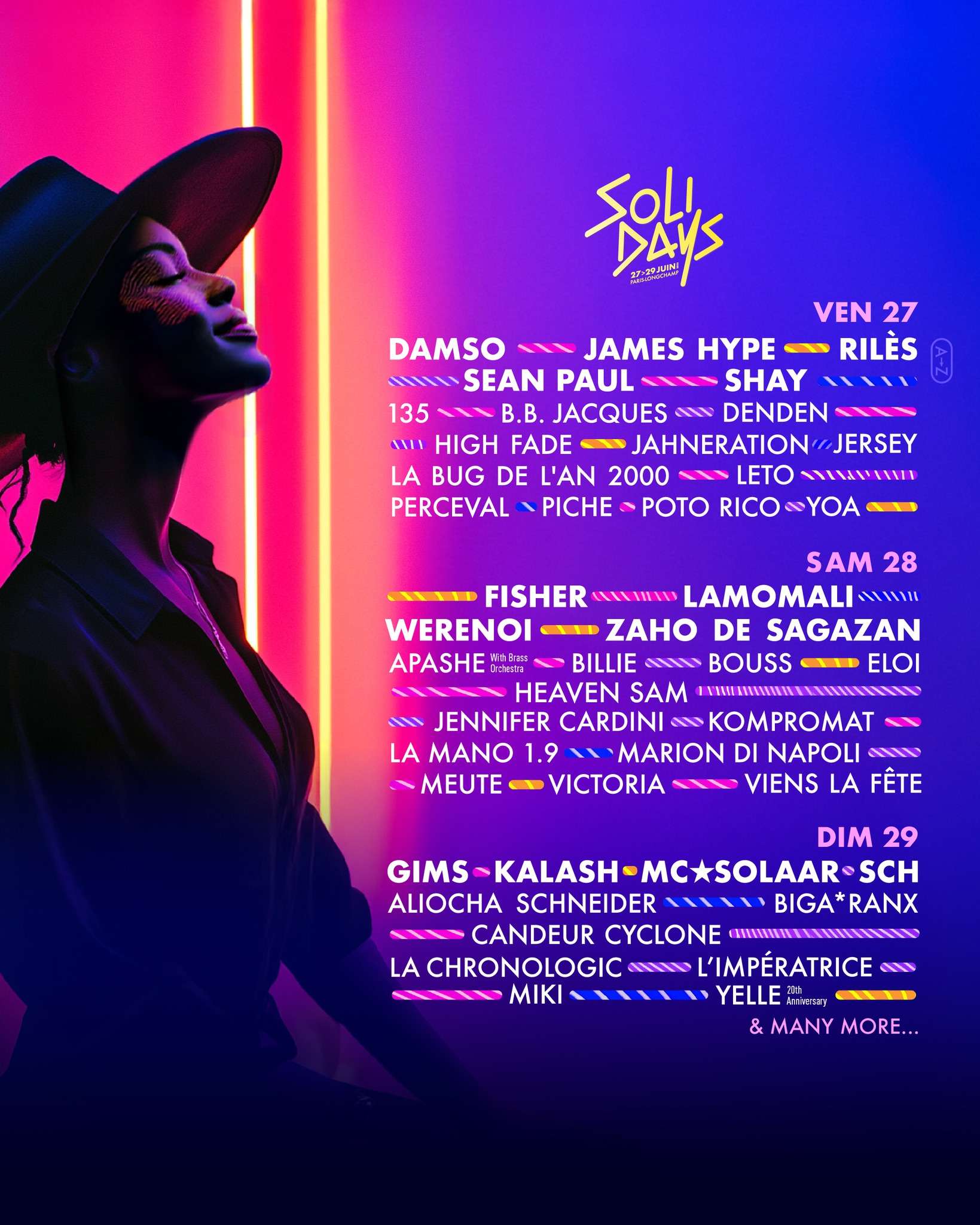 Solidays je francuski muzički festival posvećen borbi protiv AIDS-a i kampanji za ravnopravnost i angažovanje mladih, čineći to putem više od 80 koncerata tokom junskog vikenda. Održava se na hipodromu u Parizu i do sada su prikupili više od 2 miliona dolara.