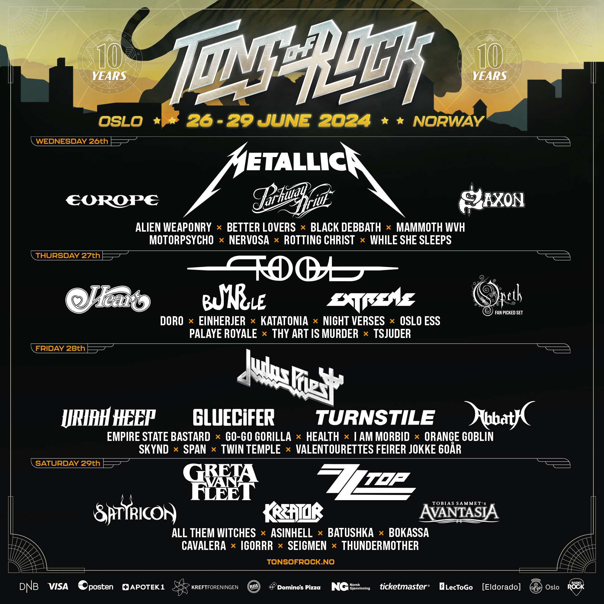 Tons of Rock održava se od 2014. godine u Norveškoj. U pitanju je trodnevna fešta za sve metal i rock fanove koji mogu uživati u koncertima najvećih zvezda današnjice.