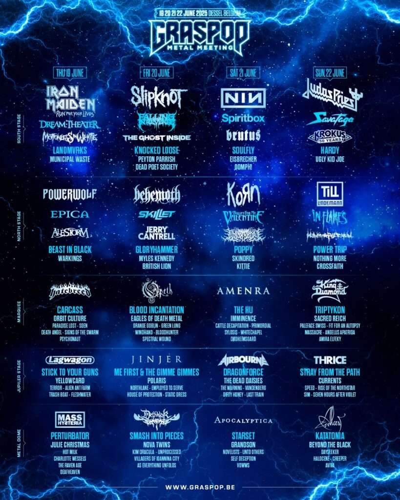 Sunčano prolećno vreme donosi mnogo zadovoljstva. Za organizaciju Graspop Metal Meeting festivala to je ujedno i signal da se završi poster za predstojeće leto. Sa novih 16 imena poznat je konačan muzički program.