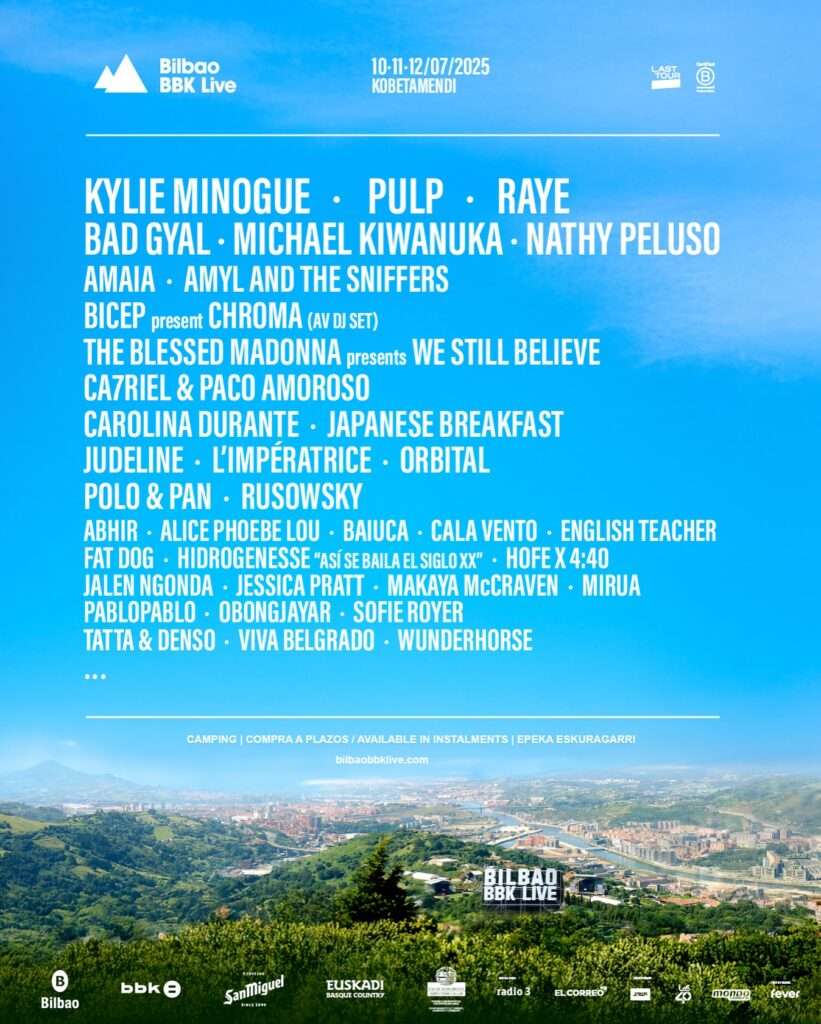Među najzvučnijim imenima su pop ikona Kylie Minogue, koja je prošle godine priredila spektakl na Szigetu, te razigrana britanska družina Pulp, čiji je nastup obeležio prošlogodišnji Primavera Sound u Barseloni. Visoko na posteru su još soul kantautorka RAYE, zatim njen kolega i sunarodnik Michael Kiwanuka, te prave koncertne bombe Bad Gyal i Nathy Peluso.