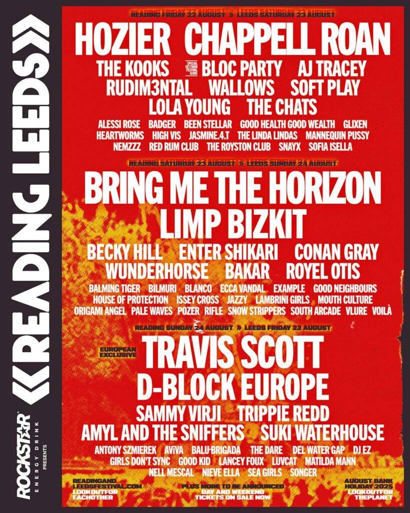 Svi oni se pridružuju ranije najavljenim hedlajnerima kao što su Travis Scott, Chappell Roan, Bring Me The Horizon i Hozier, a nastupaće još Enter Shikari, Amyl And The Sniffers, High Vis, Bloc Party, Lambrini Girls, The Chats, The Linda Lindas i mnogi drugi.