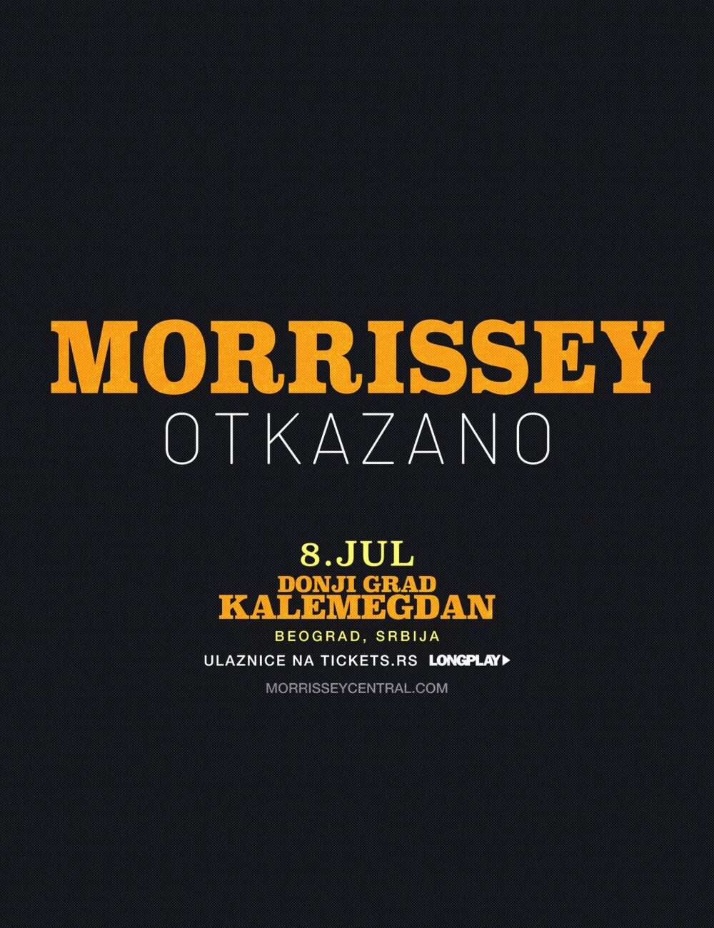 Najavljeni koncert koji je Morrissey trebalo da održi u Beogradu 8. jula na Kalemegdanu službeno je otkazan.