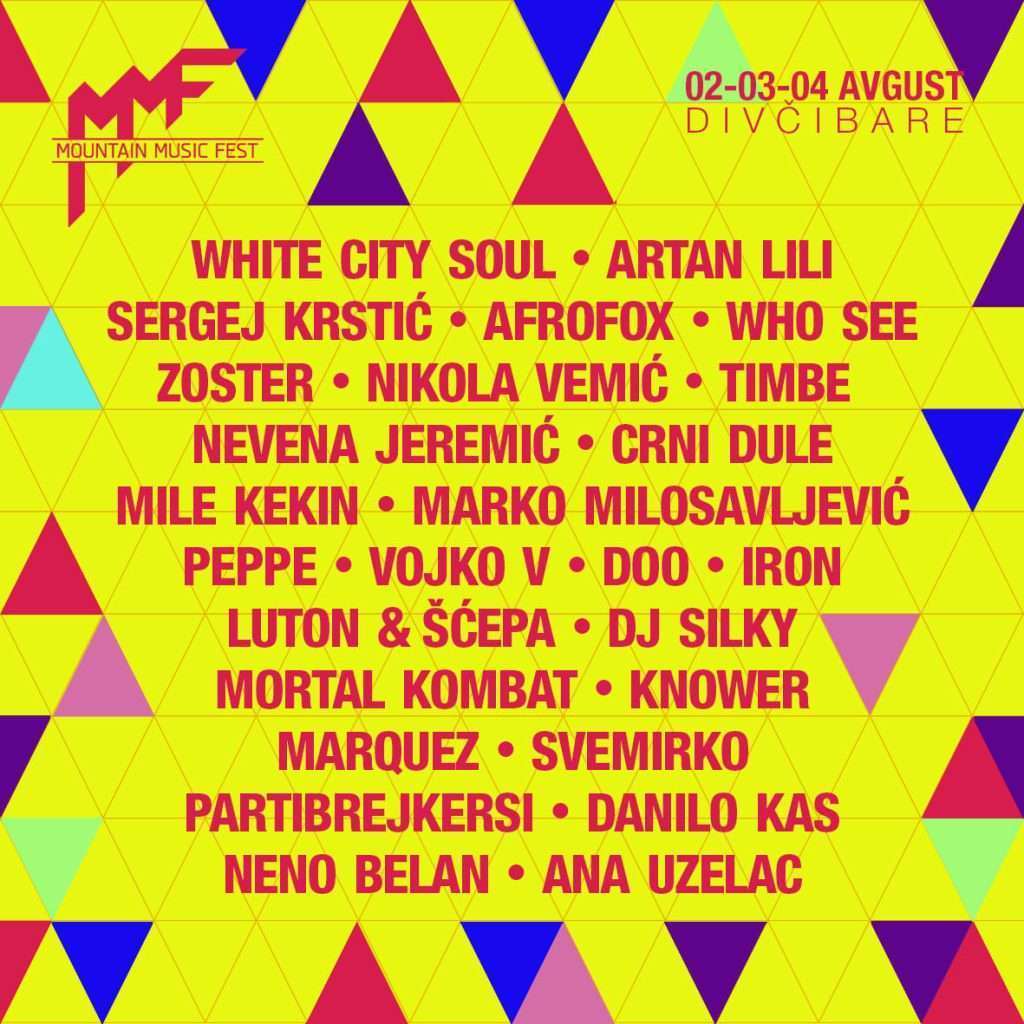 Ovogodišnje izdanje Mountain Music Festa na programu je od 2. do 4. avgusta. U pitanju je trodnevni planinski boutique festival muzike i umetnosti na Divčibarama. Na ski stazi Crni Vrh, posetioci mogu uživati u koncertima na tri muzičke bine i još više od 15 dodatnih sadržaja koji uključuju Avantura park, popularnu nauku, sport i kreativne radionice. Zbog svega ovog često nosi epitet festivala za celu porodicu.