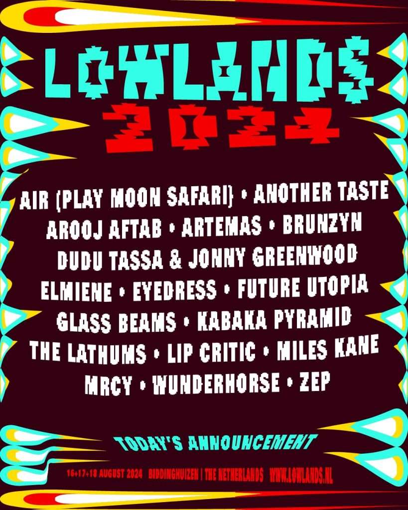 Pored njih na Lowlands dolaze još Arooj Aftab, Future Utopia, Wunderhorse, Artemas, Another Taste, Kabaka Pyramid. Spisak upotpunjavaju Brunzyn, ZEP, Elmiene, Lip Critic, Eyedress, MRCY i Dudu Tassa & Jonny Greenwood.