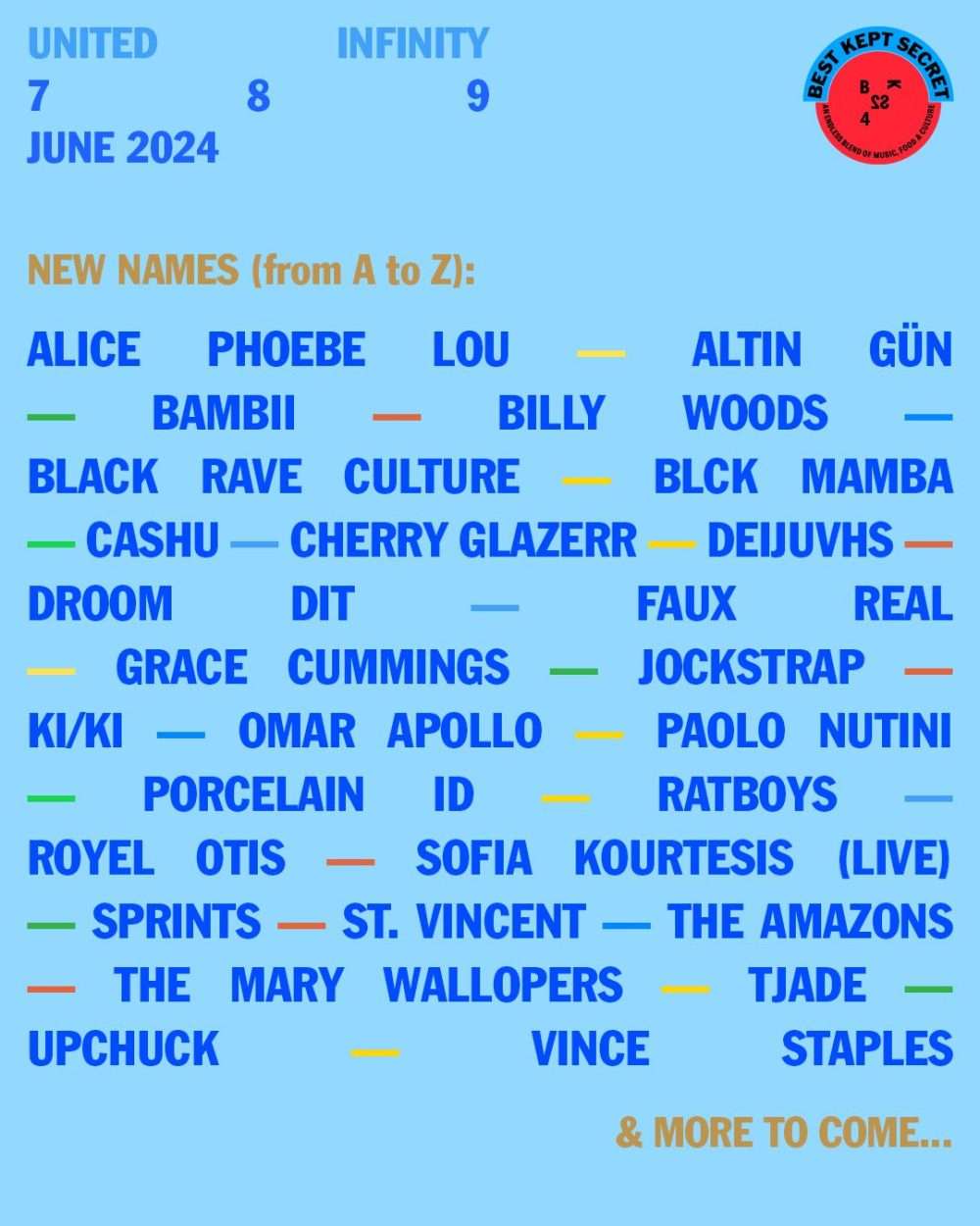 Svi oni se pridružuju ranije najavljenim imenima kao što su Disclosure, Justice, PJ Harvey, Amyl & The Sniffers, BadBadNotGood, Parcels, Militarie Gun, Slowdive, Baxter Dury, Viagra Boys i mnogi drugi.