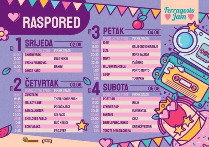 Poslednje izdanje Ferragosto JAM festivala biće održano od 2. do 5. avgusta na Orahovačkom jezeru, a sada su organizatori predstavili kompletan raspored nastupa po danima, kao i konačnu satnicu.