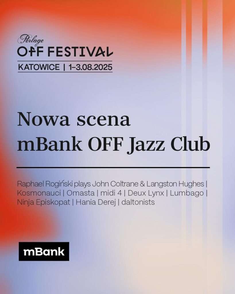 OFF Festival predstavlja i mBank OFF Jazz Club, novi stejdž na kom će nastupati proslavljeni poljski džez muzičari, kao i mlade nade savremenog poljskog džeza. Postavu na novoj bini činiće Raphael Rogiński, Kosmonauci, midi 4, Deux Lynx, Lumbago, Ninja Episkopat, Hania Derej i daltonists.