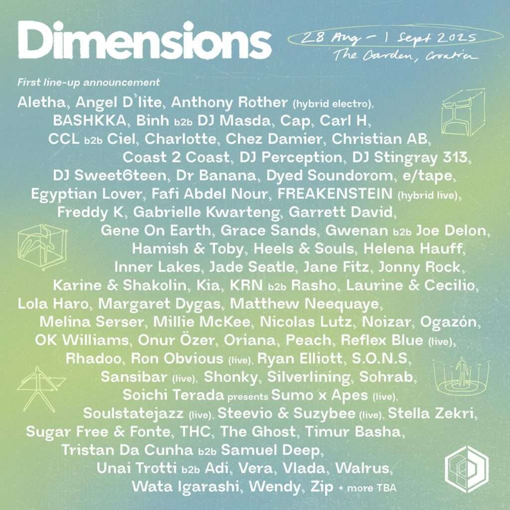 Festival se od 28. avgusta do 1. septembra vraća u predivni Garden resort u Tisnom, a muzički program u ovom momentu čine Dimensions debitanti dj sweet6teen, Egyptian Lover, Fafi Abdel Nour, Rhadoo, Freddy K, Grace Sands i Kia. Tu si i festivalski starosedeoci Helena Hauff, Coast 2 Coast, Vlada i Zip, kao i mnogi drugi.