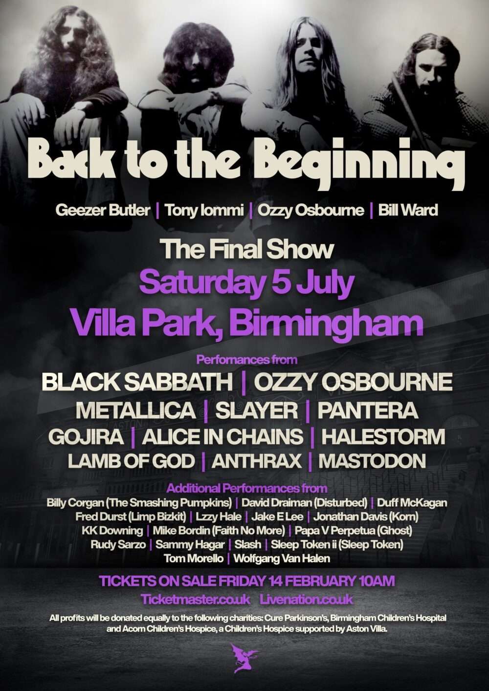 Na poslednjem koncertu, nazvanom “Back to the Beginning”, pored zvezda večeri nastupaće i rok i metal ikone Metallica, Lamb Of God, Slayer, Gojira, Alice In Chains, Mastodon, Pantera Halestorm i Anthrax.