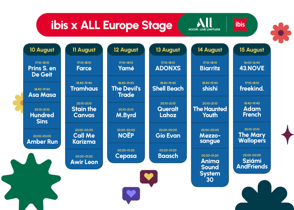 Europe Stage će biti domaćin brojnim talentovanim izvođačima među kojima su Amber Run, The Haunted Youth, Queralt Lahoz, Call Me Karizma, Shell Beach, M. Byrd i drugi…