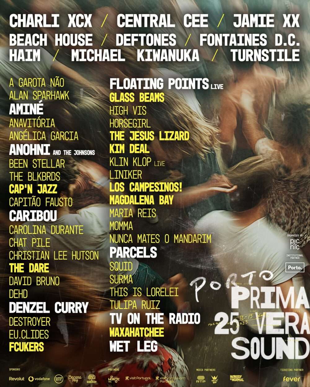 Kao i u Barseloni, najveće zvezde portugalske Primavere biće Charli XCX, odnosno britanski reper Central Cee. Tu su i članice sestrinskog benda HAIM, zatim mag plesne muzike Jamie XX, nu metal velikani Deftones, te dream pop duo iz Baltimora, Beach House.