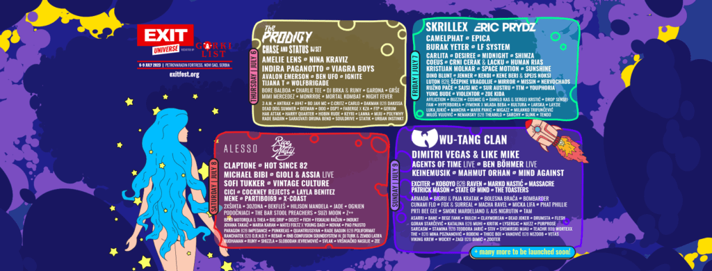 Na EXIT ovog leta dolaze Prodigy, Viagra Boys, Skrillex, Cockney Rejects, Ignite, CamelPhat, Hot Since 82, Eric Prydz, Amelie Lens, Nina Kravitz, Epica, Exciter, Massacre, Alesso, Dimitri Vegas & Like Mike, Sofi Tukker, Claptone, Burak Yeter i mnogi drugi.