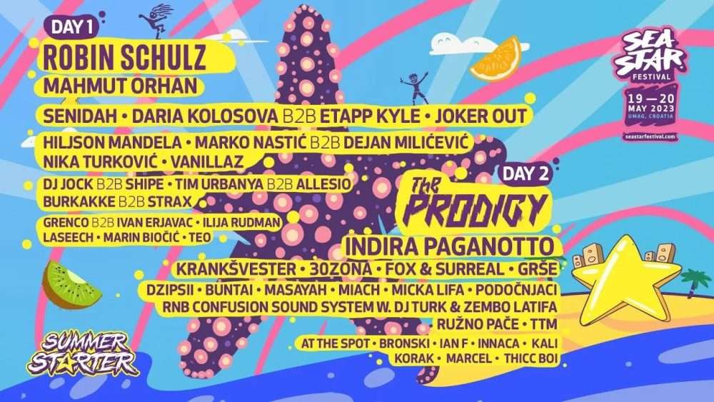 Peto izdanje Sea Star festivala održaće se 19. i 20. maja u laguni Stella Maris u Umagu. Program će se odvijati na četiri pozornice – Tesla Main Stage, Nautilus Arena, Electric Waves i Silent Octopus. U ponudi su trenutno festivalske ulaznice po promotivnoj ceni od 39 eura, kao i jednodnevne i VIP Gold ulaznice, odnosno Onstage Experience VIP, koji daje pristup glavnim stejdževima. Ulaznice su dostupne na zvaničnom festivalskom sajtu kao i online i na svim prodajnim mestima sistema Entrio.