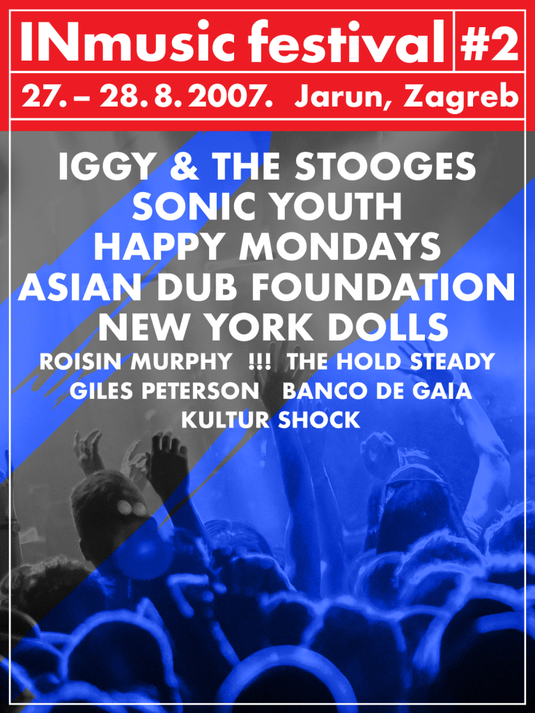 Nije bilo posustajanja ni kada je drugo izdanje INmusica u pitanju koje je održano krajem avgusta na novoj lokaciji! Gradsko jezero Jarun je postalo mesto gde se festivalska magija odvija. Te godine pozornicama su prodefilovali veterani Iggy & the Stooges, New York Dolls i Sonic Youth, odnosno fantastični Happy Mondays, The Hold Steady i Róisín Murphy, između ostalih. Odličnu regionalnu postavu činili su Obojeni program, Messerschmitt, Letu štuke, Superhiks, Majke i drugi. Verovatno najbolji line-up u istoriji INmusica.