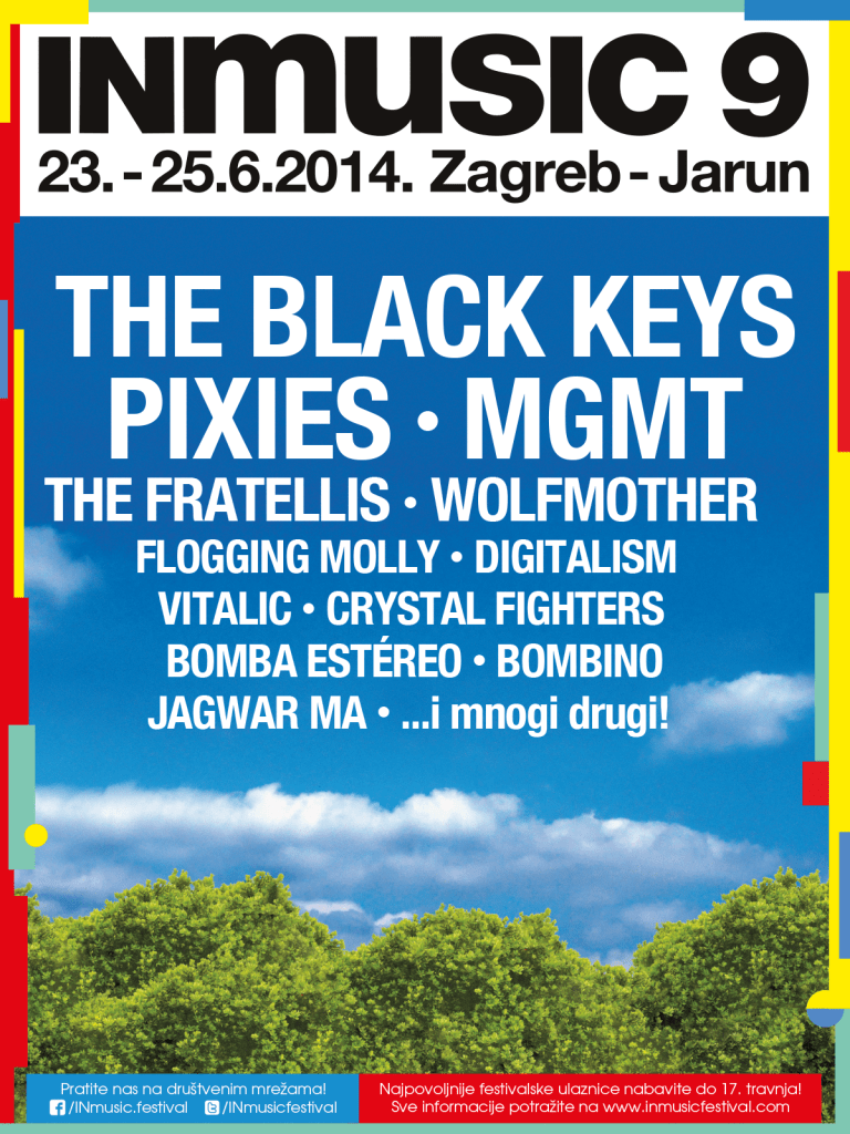 Za 9. INmusic je provejavala priča kako će najveći hedlajner biti Pearl Jam, ali do toga ipak nije došlo. Zagrebački festival u ovoj godini se okrenuo indie priči pa smo videli bendove kao što su Pixies, Foals, The Fratellis, MGMT, Bombay Bicycle Club, Jagwar Ma, dok su Flogging Molly ponovnim gostovanjem potvrdili da su miljenici lokalne publike. Za raspojasani ples bili su zaduženi Digitalism, Bomba Estereo i Crystal Fighters.
