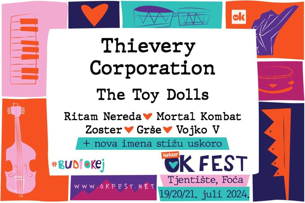 Pored grupe The Toy Dolls, za OK Fest se spremaju bendovi Ritam Nereda, Zoster i Mortal Kombat, kao i regionalne hip-hop atrakcije Vojko V i Grše. Svi oni se pridružuju ranije najavljenom sastavu Thievery Corporation. Organizatori će uskoro objaviti nove učesnike.
