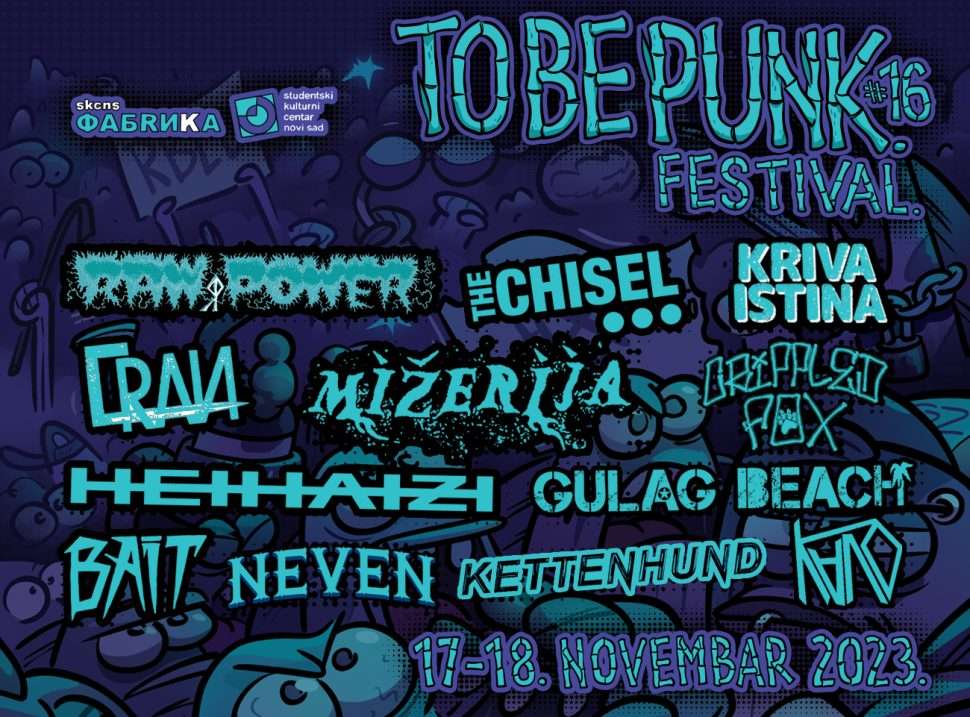 Šesnaesto izdanje To Be Punk festivala održaće se u SKCNS Fabrici u petak i subotu, 17. i 18. novembra 2023. godine.