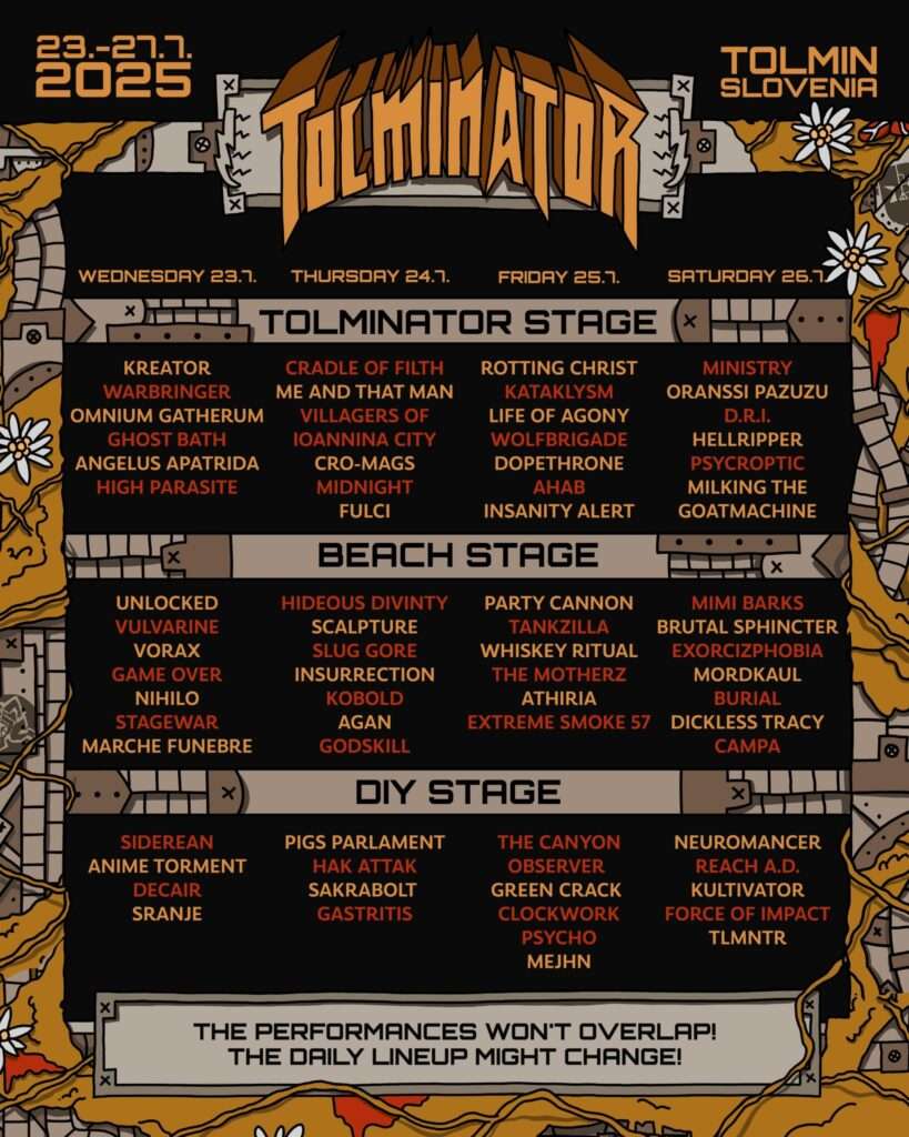 Dva i po meseca pre samog starta, Tolminator Metal Fest je objavio raspored nastupa po danima, kao i po binama za svoje predstojeće izdanje. Verni metalci sada mogu da počnu sa planovima i pravljenjem sopstvenih koncertnih aktivnosti.