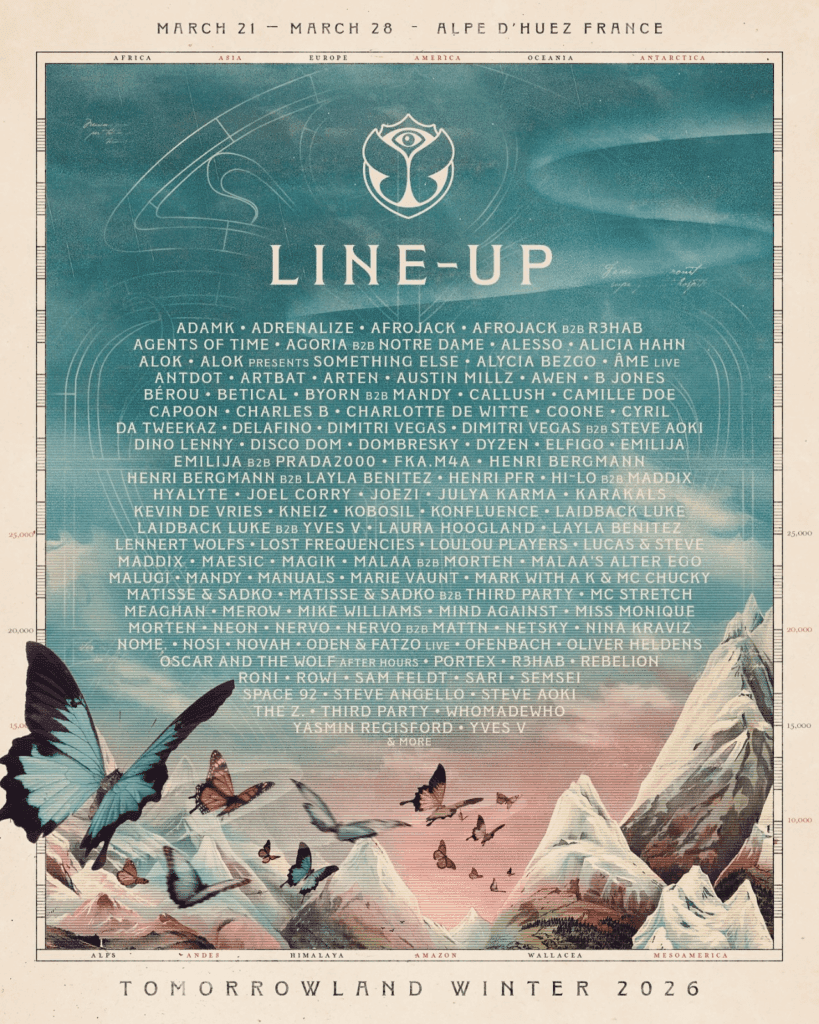 Skijaški ogranak festivalskog giganta još jednom će se vratiti na francuske Alpe od 21. do 28. marta. Među proklamovanim hedlajnerima su Headliners will include Charlotte de Witte, Steve Aoki, Steve Angello, Lost Frequencies, Dimitri Vegas, Alok, Netsky, Agents Of Time i Mind Against.