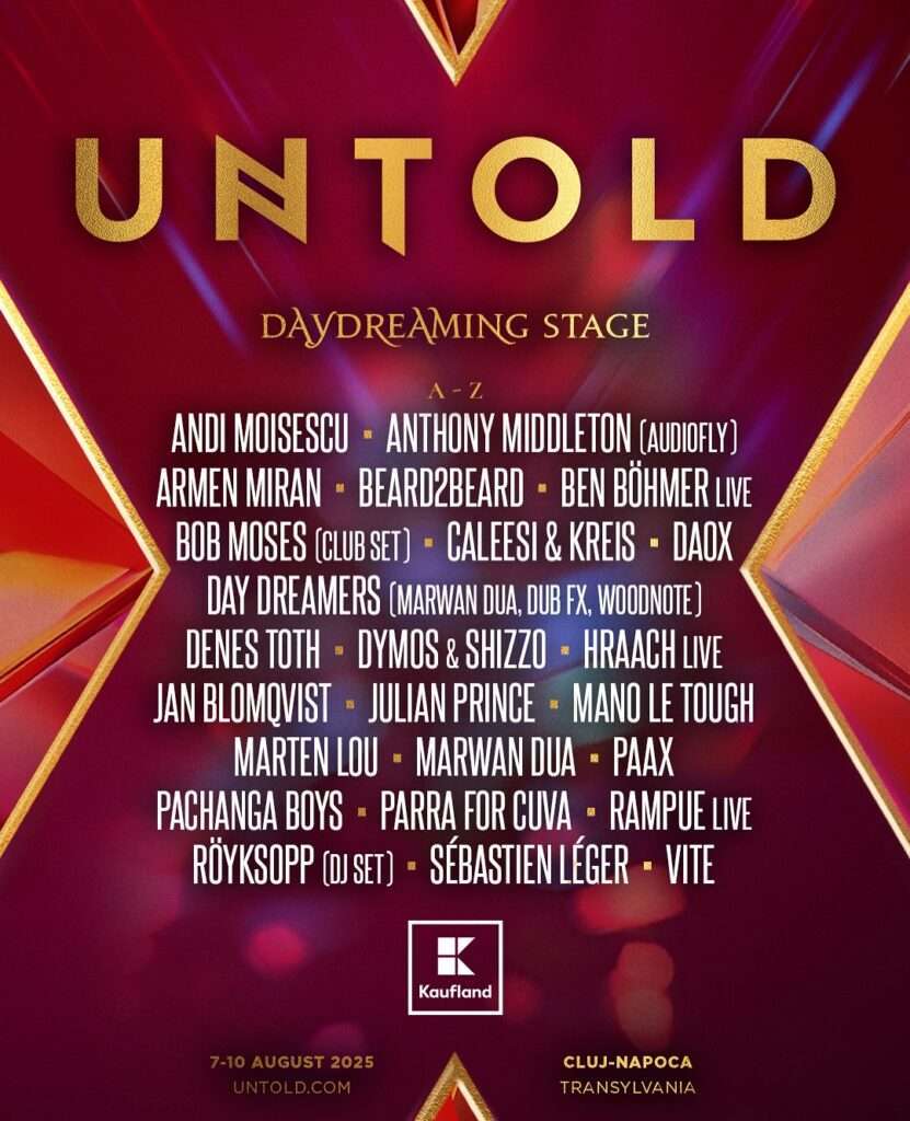 Ovogodišnje izdanje Untold festivala na programu je od 7. do 10. avgusta u rumunskom gradu Klužu. U pitanju je jedan od popularnijih festivala elektronske muzike u ovom delu Evrope. Od debitantskog izdanja 2015. godine, festival je dosledno napredovao na svim nivoima, uključujući produkciju i rasvetu koji odražavaju veličinu lajnapa prepunih globalno poznatih izvođača.