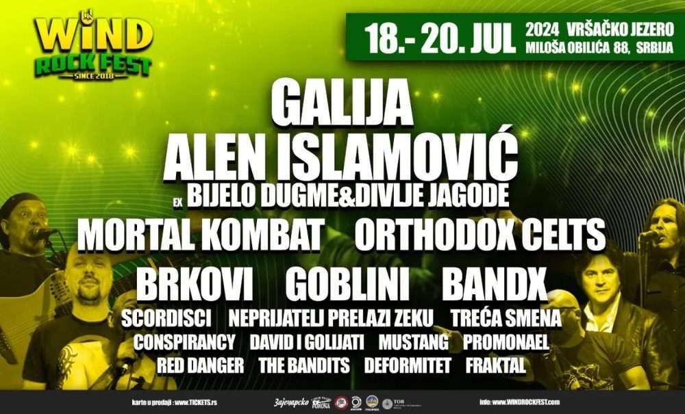 Ovogodišnji Wind Rock Fest na programu je od 18. do 20. jula na Vršačkom jezeru, a ranije je najavljeno da će nastupati Goblini, Brkovi, Galija, Alen Islamović, Mortal Kombat i drugi. Ulaznice su dostupne putem sajta i na prodajnim mestima Tickets.rs, a cena kompleta za sva tri dana iznosi 3000 dinara, dok jednodnevne ulaznice koštaju 800 dinara.